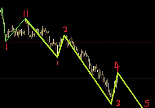 黃金空頭趨勢沒錯,實際操作的時候需要右側進場,從波浪理論圖解看這里數出來是4浪,但不知道大家是否有體會,當市場總是在你看得非常清楚的地方變盤,走出異類形態,所以這種急速回調無需追求高位做空,可以看右側的頭部是否走什么形態,然后決定具體操作。
