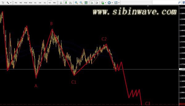 歐元周圖從波浪理論來看市場前面走完了大A浪,這個A浪是一個平臺型調整,然后是一個時間相對小的B浪,然后進入C浪區域,眼前正在C浪3的主升浪區域,這個C浪3是一個3500點的空頭行情,細看走了非常標準的5波結構空頭第一波!