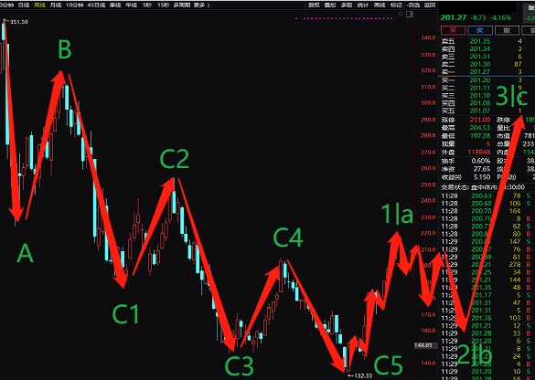五X液這只股票的切入時機在后面調整的2浪區域,2浪具體的模型主要有平臺型調整和鋸齒型調整,給市場一點時間自然就會呈現出這次的市場會運行哪一種調整,關鍵點在于懂得市場調整到2浪c的位置中考慮埋伏,專注后面的3浪或者C浪行情,當市場調整出2浪a,然后2浪b,進入2浪c時我們會及時更新。